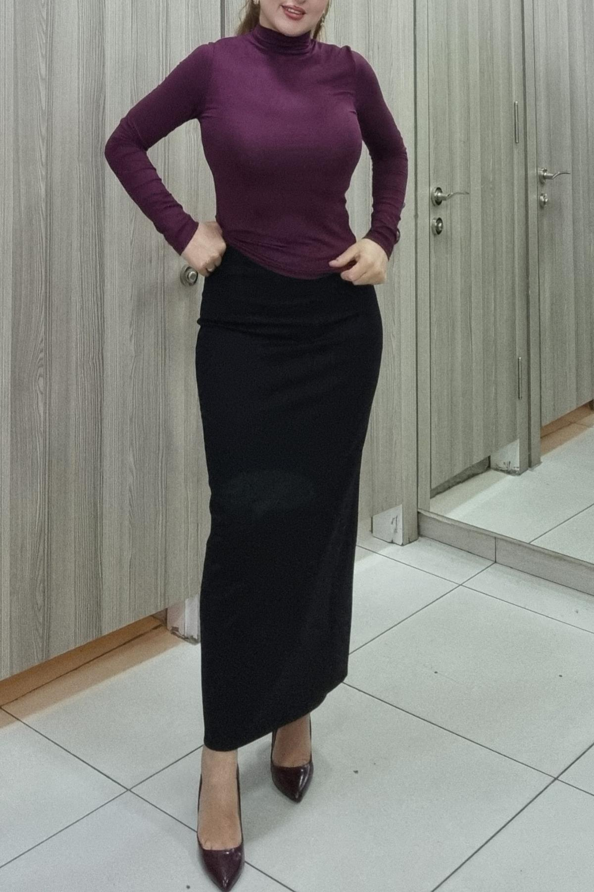 Siyah Uzun Çelik Kumaş Kalem Etek - 11091