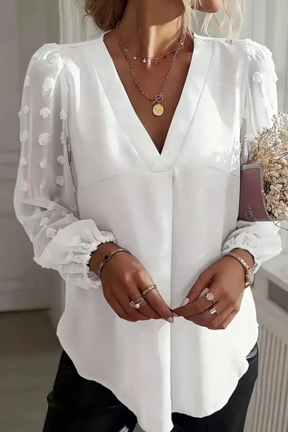 V Yaka Kollar Tül Popon Detaylı Sandy Bluz - 46126